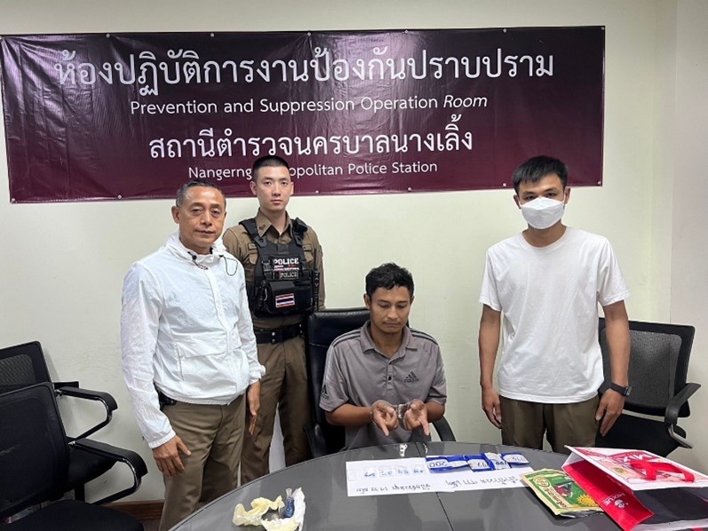เมื่อวันที่ 18 มีนาคม 2567 ได้ทำการจับกุมตัวMR.SOUKKY สงวลนามสกุล สัญชาติลาว,และMR.PAO INTHISITH สัญชาติลาว พร้อมด้วยของกลางบุหรี่ไฟฟ้า จำนวน 2 ชิ้น ซึ่งต้องหาว่ากระทำผิดฐานช่วยซ่อนเร้น ช่วยจำหน่าย ช่วยพาเอาไปเสีย ซื้อ รับจำนำ หรือรับไว้ด้วยประการใด