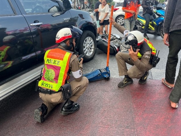 เมื่อวันที่ 4 ก.พ. 2568 เวลา 13.20 น. มีเหตุประชาชนรถเฉี่ยวชนที่แยกเทวกรรม บริเวณถนนกรุงเกษม เป็นเหตุระหว่างรถจักรยานยนต์ และรถยนต์ส่วนบุคคล มีผู้ได้รับบาดเจ็บเล็กน้อย 1 ราย เจ้าหน้าที่แจ้งกู้ภัยมาปฐมพยาบาลเรียบร้อย จากนั้นจึงต้องดำเนินการเคลื่อนย้ายรถที่กีดขวางการจราจร เนื่องจากท้ายของรถจักรยานยนต์ เข้าไปติดอยู่ใต้รถยนต์ เจ้าหน้าที่จึงดำเนินการหาแม่แรงเพื่อทำการแยกรถออกจากกัน และนำเคลื่อนย้ายให้พ้นกีดขวางได้ในที่สุด